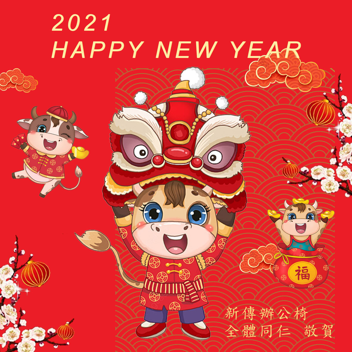 敬祝 新年快樂,牛年行大運!